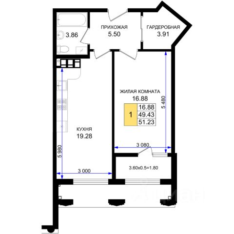 Жилой комплекс включает в себя 18 корпусов переменной этажности: от 18 до 21 этажей. Дом возводится по долговечной монолитной технологии с фасадами из керамического кирпича, с вставками декоративных элементов. В проекте выполнена дизайнерская отделка входных групп, установлены современные скоростные лифты. На первых этажах расположены закрытые боксы для хранения колясок и велосипедов. В жилом комплексе предложено множество планировочных решений: от квартир- студий до 2-х комнатных квартир в классических планировках. Сдаются юниты с подчистовой отделкой, панорамными окнами и высотой потолков до 2,94 метра. Парк "Флагманский" площадью 42 000 м2 расположен внутри микрорайона. Жилой комплекс оборудован детскими эко-городками, площадками для групповых занятий, кроссфита, воркаута, уличными тренажерами, велодорожками, памп-треками, футбольным полем, площадкой для выгула собак и амфитеатром для проведения мероприятий. На территории проекта ведётся круглосуточное видеонаблюдение, а так же установлены "тревожные" кнопки, в подъездах домов имеется консьерж-сервис и работает частное охранное предприятие. Коммерческие помещения располагаются на первых этажах. В проекте реализованы 4 детских сада и школа на 1 875 мест. Для удобства жителей обустроены парковочные зоны четырёх типов: наземные, подземные, крытые под стилобатом и многоуровневый паркинг. Проект расположен в районе Прикубанского округа. В шаговой доступности детские сады, школа, магазины, поликлиника, фитнесс-клубы, детские секции, развивающие центры, парк "Флагманский" и торгово-развлекательный центр "Любимово". До центра города 20 минут транспортом. Купить 1-комнатную квартиру площадью примерно 50 м2 (кв.м.) в Краснодарском крае.