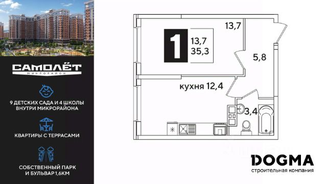 DOGMA - ТОП-3 застройщик по объему строительства в РФ. В продаже 1-комнатная квартира от застройщика! Мкр. "DOGMA PARK" г. Краснодар, Литер 2 Срок сдачи: 4 кв. 2026, общей площадью 37.3 кв.м., на 2 этаже. DOGMA PARK-это новый микрорайон, сочетающий в себе стильную архитектуру современного города, и настоящий зеленый оазис, который расположится прямо во дворе. Первая очередь проекта расположена в непосредственной близости от собственного ЭКО-парка. • Собственный парк 7,3 га • Благоустройство всего МКР 5,5 Га • Безбарьерная среда • Дизайнерские лифтовые холлы • Быстрые бесшумные лифты • Подземный паркинг и кладовые • Зарядные устройства для электромобилей • Панорамные виды из квартир с витражным остеклением • Просторные дворы • Прогулочные пешеходные аллеи • Велодорожка • Воркаут-зоны • 3 школы и 5 детских садов • Современные детские площадки • Баскетбольная и универсальная спортивные площадки • Медицинская клиника • Фитнес-центр с бассейном • Торгово-развлекательный центр • Охрана на территории микрорайона Приобрести квартиру можно одним из способов: -субсидированная семейная ипотека 4,5 % на весь срок -рассрочка до конца строительства -оплата наличными -дистанционная покупка Позвоните сейчас и забронируйте квартиру со скидкой! Купить 1-комнатную квартиру до 7 млн. рублей в Краснодарском крае.