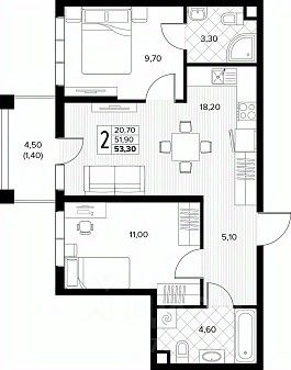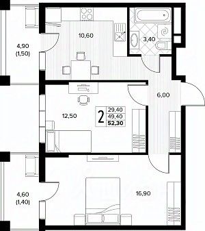 Из кухни выход на застекленную лоджию с панорамным остеклением. Большая комната, санузел совмещенный. В доме просторные входные группы, пандус для людей с ограничением возможностей, грузовой и пассажирский лифты.