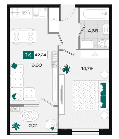 1-комнатная квартира с предчистовой отделкой — идеальный вариант для тех, кто хочет реализовать собственный дизайн-проект.