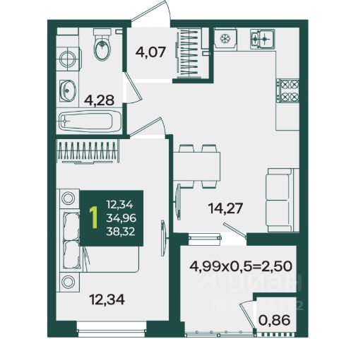 В квартире выполнена качественная предчистовая отделка. Хорошая планировка с двумя полноценными комнатами и просторной кухней-гостиной в 14.5 км.м. С кухни есть выход на застекленную лоджию. Имеется зона под гардеробную.