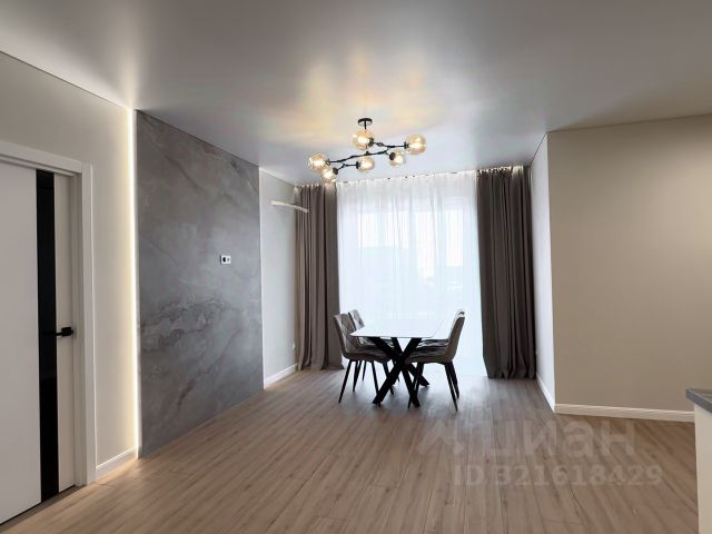 Квартира с новым качественным ремонтом, оснащена мебелью и бытовой техникой. Из окон открывается потрясающий вид на историческую часть города. Планировка квартиры включает в себя: комнату площадью 18 кв. м, кухню — 15,7 кв. м, совмещённый санузел — 4,5 кв. м, прихожую — 6,4 кв. м и большую лоджию.