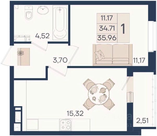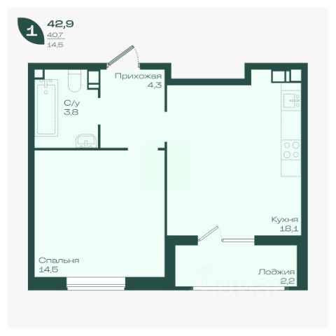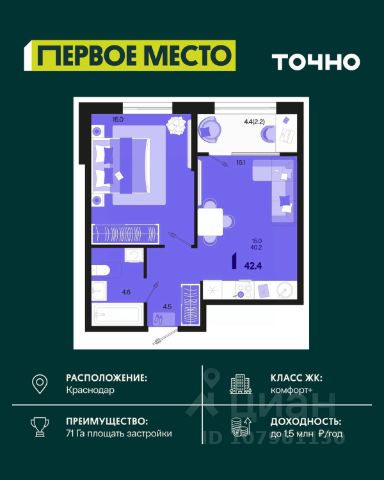 Продаётся 1-комнатная квартира в строящемся доме (Литер 7.2), срок сдачи: I-кв. 2026, общей площадью 38.7 кв.м., на 11 этаже. ВЫГОДНОЕ РАСПОЛОЖЕНИЕ