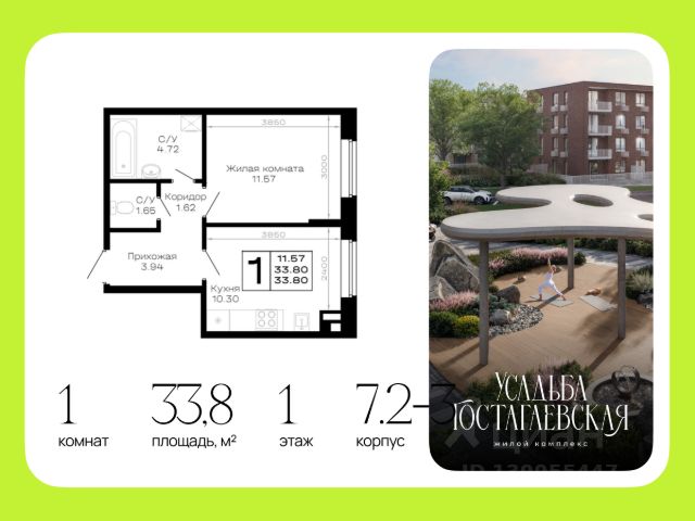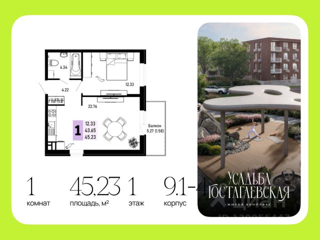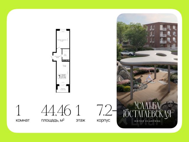 Продается 1-комнатная квартира площадью 44.40 кв. м без отделки, расположенная на 1 этаже, в новом жилом комплексе комфорт-класса "Кипарис". Прекрасный район, окруженный реликтовыми лесами и живописным рельефом гор. Адрес жилого комплекса - муниципальный округ Анапа, село Сукко, улица Мирная, дом 13.