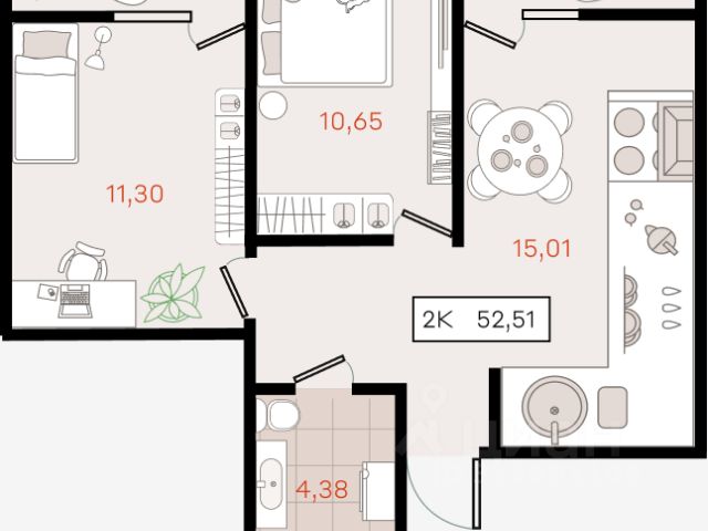 Продаётся 1-комнатная квартира в сданном доме (Литер 1), срок сдачи: I-кв. 2025, общей площадью 42.9 кв.м., на 2 этаже. Новый жилой комплекс "Огурцы" от застройщика "Партнер Инвест Кубань" расположен по адресу Краснодар, посёлок Берёзовый, Целиноградская улица.