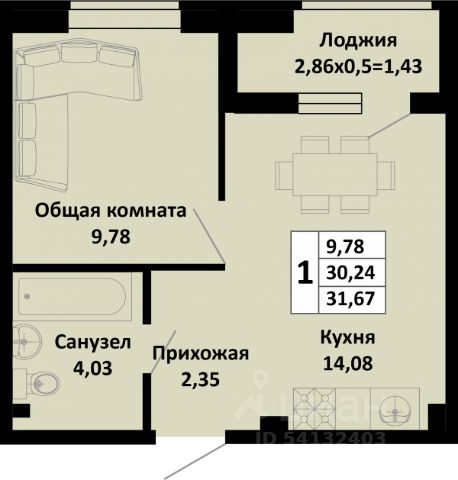 Продаётся 1-комнатная квартира в сданном доме (Литер 1), срок сдачи: IV-кв. 2025, общей площадью 34.67 кв.м., на 1 этаже. Новый жилой дом от застройщика "СЗ Кубаньновострой" расположен по адресу: Россия, Краснодарский край, Динской район, Южно-Кубанское сельское поселение, посёлок Южный, Северная улица