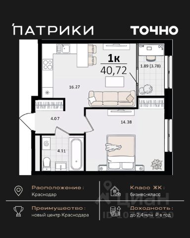 Продаётся 1-комнатная квартира в сданном доме (Дом 1), срок сдачи: I-кв. 2025, общей площадью 38.35 кв.м., на 10 этаже. Дом URAL естественным образом, за счет архитектурного решения, образует закрытую территорию. Кирпичные фасады дополняет остекление лоджий, балконов и витражи верхних этажей, где в солнечную погоду можно рассмотреть очертания гор Большого Кавказа. На территории жилого комплекса откроется фитнес-клуб и детский сад. URAL по достоинству оценят автовладельцы-двухуровневый паркинг рассчитан на 819 машиномест. Дом с характером URAL расположен на улице с похожим названием-Уральская вблизи торговых центров СБС "Мегамолл" и "Галактика", объектов социальной инфраструктуры, удобных транспортных развязок. Комфортный выезд в направлении Черноморского побережья и горнолыжных курортов даст возможность в самое короткое время добраться до трассы М4 Дон, в направлении прекрасных курортов Краснодарского края.