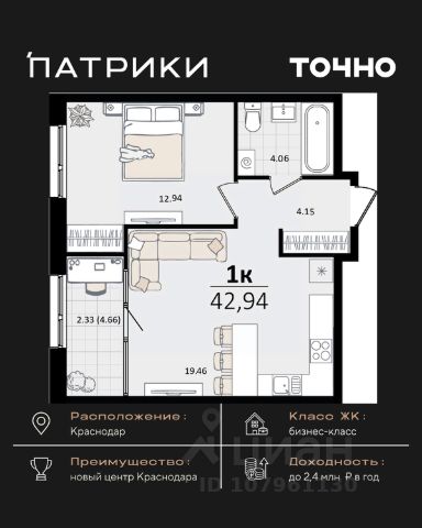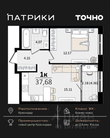 Продаются 1-комнатные апартаменты в сданном доме (Дом 75/6), срок сдачи: II-кв. 2023, общей площадью 25.2 кв.м., на 11 этаже. Апарт-отель The Grand Palace - новая точка притяжения на карте Краснодара. Проект формирует особенный облик деловой части города и вдохновляет его жителей. Апарт-отель - это новый для Краснодара формат жилья, где можно постоянно жить в более комфортных, чем в обычном доме условиях самому и с семьей или купить готовые апартаменты с ремонтом в качестве инвестиции для сдачи в красткосрочную или долгосрочную аренду. От обычного жилого комплекса апарт-отель отличает собственная внутренняя инфраструктура. Резидентам апартаментов доступны услуги зоны SPA и фитнеса, медицинского консьержа, ресторана авторской кухни, прачечной и клининга, коворкинга и лобби-бара. Все апартаменты продаются с ремонтом под ключ! Единый архитектурный стиль и продуманный до мелочей дизайн всех помещений и апартаментов надолго останется актуальным. Инфраструктура - На расстоянии менее 1 км. находятся крупнейшие торгово-развлекательные центры : СБС Мегамолл с кинотеатром, ресторанами, кафе, ТРК Галактика. - Рядом 2 premium фитнес-центра с бассейнами 50 GYM и X-FIT - 10 минут пешком. - Удачный район не только для отдыха, но и бизнеса: с оптовыми базами, офисными центрами, складскими помещениями. - Удобная транспортная развязка с выездом в любой район города, аэропорт и на трассу М4 к морю. - Множество остановок общественного транспорта, в том числе маршруток и трамвая в любой конец города. 15 минут пешком до детского сада и школы 24 Всё это обеспечит повышенный интерес и постоянный спрос на апартаменты, что гарантирует стабильный доход от рентабельной недвижимости в Краснодаре, цена на которую будет только расти.
