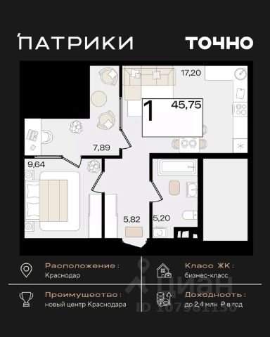 Продаются 1-комнатные апартаменты в сданном доме (Дом 75/6), срок сдачи: II-кв. 2023, общей площадью 25.2 кв.м., на 11 этаже. Апарт-отель The Grand Palace - новая точка притяжения на карте Краснодара. Проект формирует особенный облик деловой части города и вдохновляет его жителей. Апарт-отель - это новый для Краснодара формат жилья, где можно постоянно жить в более комфортных, чем в обычном доме условиях самому и с семьей или купить готовые апартаменты с ремонтом в качестве инвестиции для сдачи в красткосрочную или долгосрочную аренду. От обычного жилого комплекса апарт-отель отличает собственная внутренняя инфраструктура. Резидентам апартаментов доступны услуги зоны SPA и фитнеса, медицинского консьержа, ресторана авторской кухни, прачечной и клининга, коворкинга и лобби-бара. Все апартаменты продаются с ремонтом под ключ! Единый архитектурный стиль и продуманный до мелочей дизайн всех помещений и апартаментов надолго останется актуальным. Инфраструктура - На расстоянии менее 1 км. находятся крупнейшие торгово-развлекательные центры : СБС Мегамолл с кинотеатром, ресторанами, кафе, ТРК Галактика. - Рядом 2 premium фитнес-центра с бассейнами 50 GYM и X-FIT - 10 минут пешком. - Удачный район не только для отдыха, но и бизнеса: с оптовыми базами, офисными центрами, складскими помещениями. - Удобная транспортная развязка с выездом в любой район города, аэропорт и на трассу М4 к морю. - Множество остановок общественного транспорта, в том числе маршруток и трамвая в любой конец города. 15 минут пешком до детского сада и школы 24 Всё это обеспечит повышенный интерес и постоянный спрос на апартаменты, что гарантирует стабильный доход от рентабельной недвижимости в Краснодаре, цена на которую будет только расти.