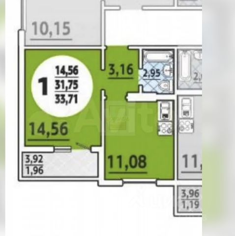- просторная кухня 10 м2 , можно объединить с лоджией 4 м2.