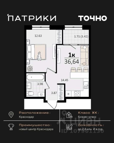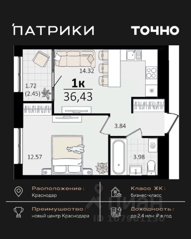 Продаются 1-комнатные апартаменты в сданном доме (Дом 75/6), срок сдачи: II-кв. 2023, общей площадью 26.2 кв.м., на 12 этаже. Апарт-отель The Grand Palace - новая точка притяжения на карте Краснодара. Проект формирует особенный облик деловой части города и вдохновляет его жителей. Апарт-отель - это новый для Краснодара формат жилья, где можно постоянно жить в более комфортных, чем в обычном доме условиях самому и с семьей или купить готовые апартаменты с ремонтом в качестве инвестиции для сдачи в красткосрочную или долгосрочную аренду. От обычного жилого комплекса апарт-отель отличает собственная внутренняя инфраструктура. Резидентам апартаментов доступны услуги зоны SPA и фитнеса, медицинского консьержа, ресторана авторской кухни, прачечной и клининга, коворкинга и лобби-бара. Все апартаменты продаются с ремонтом под ключ! Единый архитектурный стиль и продуманный до мелочей дизайн всех помещений и апартаментов надолго останется актуальным. Инфраструктура - На расстоянии менее 1 км. находятся крупнейшие торгово-развлекательные центры : СБС Мегамолл с кинотеатром, ресторанами, кафе, ТРК Галактика. - Рядом 2 premium фитнес-центра с бассейнами 50 GYM и X-FIT - 10 минут пешком. - Удачный район не только для отдыха, но и бизнеса: с оптовыми базами, офисными центрами, складскими помещениями. - Удобная транспортная развязка с выездом в любой район города, аэропорт и на трассу М4 к морю. - Множество остановок общественного транспорта, в том числе маршруток и трамвая в любой конец города. 15 минут пешком до детского сада и школы 24 Всё это обеспечит повышенный интерес и постоянный спрос на апартаменты, что гарантирует стабильный доход от рентабельной недвижимости в Краснодаре, цена на которую будет только расти.