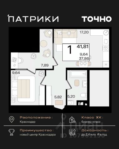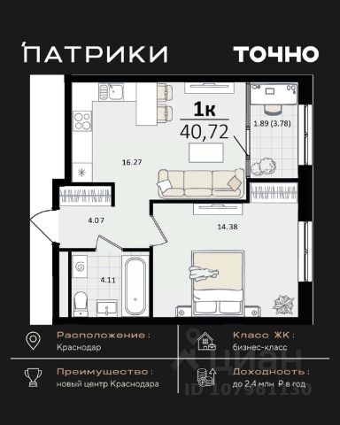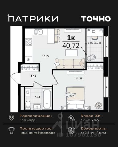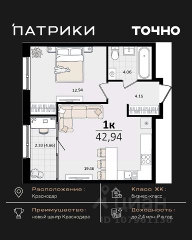 Продаются 1-комнатные апартаменты в сданном доме (Дом 75/6), срок сдачи: II-кв. 2023, общей площадью 26.2 кв.м., на 12 этаже. Апарт-отель The Grand Palace - новая точка притяжения на карте Краснодара. Проект формирует особенный облик деловой части города и вдохновляет его жителей. Апарт-отель - это новый для Краснодара формат жилья, где можно постоянно жить в более комфортных, чем в обычном доме условиях самому и с семьей или купить готовые апартаменты с ремонтом в качестве инвестиции для сдачи в красткосрочную или долгосрочную аренду. От обычного жилого комплекса апарт-отель отличает собственная внутренняя инфраструктура. Резидентам апартаментов доступны услуги зоны SPA и фитнеса, медицинского консьержа, ресторана авторской кухни, прачечной и клининга, коворкинга и лобби-бара. Все апартаменты продаются с ремонтом под ключ! Единый архитектурный стиль и продуманный до мелочей дизайн всех помещений и апартаментов надолго останется актуальным. Инфраструктура - На расстоянии менее 1 км. находятся крупнейшие торгово-развлекательные центры : СБС Мегамолл с кинотеатром, ресторанами, кафе, ТРК Галактика. - Рядом 2 premium фитнес-центра с бассейнами 50 GYM и X-FIT - 10 минут пешком. - Удачный район не только для отдыха, но и бизнеса: с оптовыми базами, офисными центрами, складскими помещениями. - Удобная транспортная развязка с выездом в любой район города, аэропорт и на трассу М4 к морю. - Множество остановок общественного транспорта, в том числе маршруток и трамвая в любой конец города. 15 минут пешком до детского сада и школы 24 Всё это обеспечит повышенный интерес и постоянный спрос на апартаменты, что гарантирует стабильный доход от рентабельной недвижимости в Краснодаре, цена на которую будет только расти.
