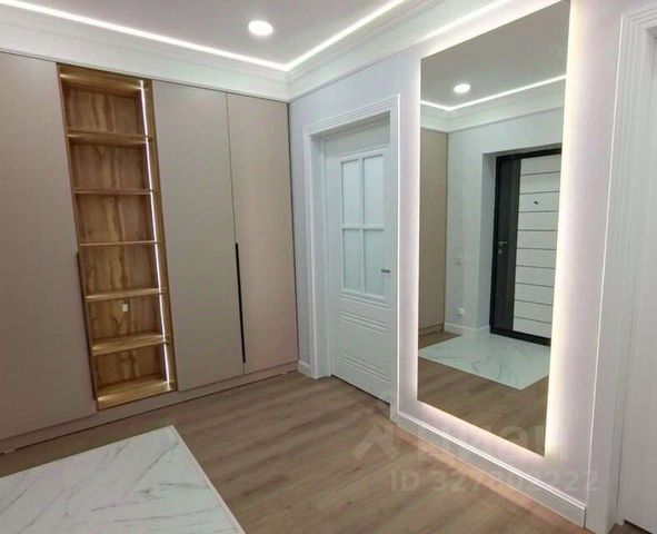 О КВАРТИРЕ:6 этаж 17-этажного дома. Пол выстелен дорой крупноформатной плиткой, дизайнерский потолок с ленточной ночной подсветкой, стены сделаны по индивидуальному проекту, встроенный шкаф купе, кухня полностью оборудована бытовой техникой: встроенный холодильник, посудомоечная машина, духовой шкаф, круглый стол, дорогие стулья.