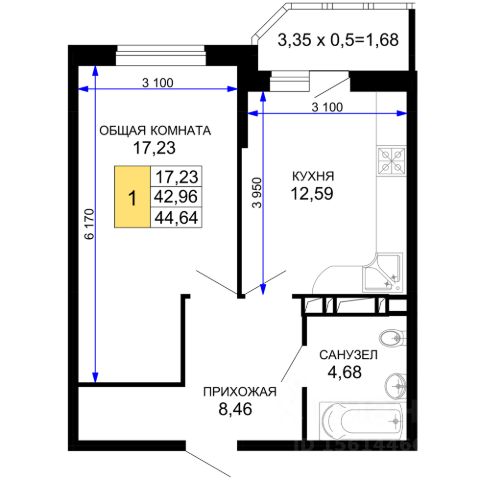 Продаётся 1-комнатная квартира в сданном доме (Литер 4), срок сдачи: III-кв. 2022, общей площадью 41.62 кв.м., на 13 этаже. Расположение, транспортная доступность