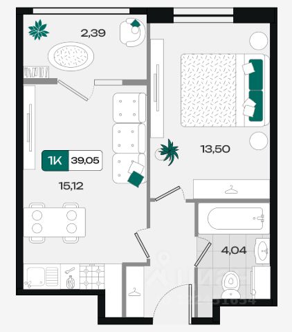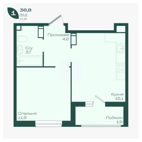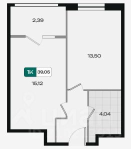 — Общая площадь — 39,9 м²