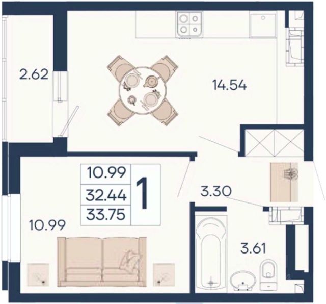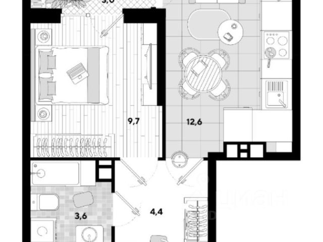1-комнатная квартира 39,9 м² в мкр. Почтовый. Краснодар, ул. им. Валерия Гассия, д. 3. Цена ниже готовых с ремонтом — экономия на старте и свобода выбора интерьера!