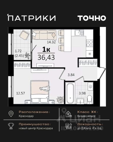 • ✓ В базе Циан 28 1-комнатных квартир на 14 этаже в микрорайоне ХБК в городе Краснодар