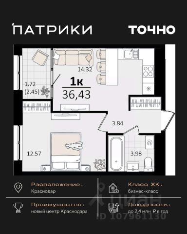 Продаются 1-комнатные апартаменты в сданном доме (Дом 75/6), срок сдачи: II-кв. 2023, общей площадью 22 кв.м., на 15 этаже. Апарт-отель The Grand Palace - новая точка притяжения на карте Краснодара. Проект формирует особенный облик деловой части города и вдохновляет его жителей. Апарт-отель - это новый для Краснодара формат жилья, где можно постоянно жить в более комфортных, чем в обычном доме условиях самому и с семьей или купить готовые апартаменты с ремонтом в качестве инвестиции для сдачи в красткосрочную или долгосрочную аренду. От обычного жилого комплекса апарт-отель отличает собственная внутренняя инфраструктура. Резидентам апартаментов доступны услуги зоны SPA и фитнеса, медицинского консьержа, ресторана авторской кухни, прачечной и клининга, коворкинга и лобби-бара. Все апартаменты продаются с ремонтом под ключ! Единый архитектурный стиль и продуманный до мелочей дизайн всех помещений и апартаментов надолго останется актуальным. Инфраструктура - На расстоянии менее 1 км. находятся крупнейшие торгово-развлекательные центры : СБС Мегамолл с кинотеатром, ресторанами, кафе, ТРК Галактика. - Рядом 2 premium фитнес-центра с бассейнами 50 GYM и X-FIT - 10 минут пешком. - Удачный район не только для отдыха, но и бизнеса: с оптовыми базами, офисными центрами, складскими помещениями. - Удобная транспортная развязка с выездом в любой район города, аэропорт и на трассу М4 к морю. - Множество остановок общественного транспорта, в том числе маршруток и трамвая в любой конец города. 15 минут пешком до детского сада и школы 24 Всё это обеспечит повышенный интерес и постоянный спрос на апартаменты, что гарантирует стабильный доход от рентабельной недвижимости в Краснодаре, цена на которую будет только расти.