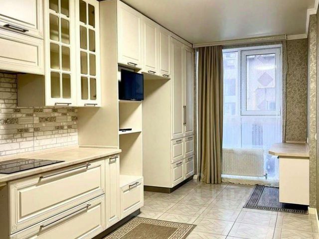 В квартире выполнен ремонт в светлых и спокойных тонах. Хорошая планировка с комнатой правильной прямоугольной формы и просторной кухней, в которой уже установлен кухонный гарнитур. Санузел совмещен, установлена новая качественная сантехника. С кухни есть выход на застекленную лоджию.