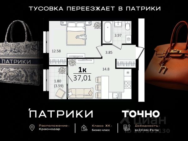 Флагманский проект группы компаний Точно - жилой комплекс бизнес-класса Патрики, это 10 домов разной этажности расположившихся на 28,5 гектарах. Жилой комплекс с концепцией город в город - прогулочные аллеи, парковая территория, 3 детских сада, 2 школы - одна из которых частная, Гранд аллея с ресторанами, фонтанами и модными бутиками, уникальные мафы и ландшафтный дизайн, создают особую атмосферу - место в котором хочется находиться. В Патриках предусмотрен и креативный кластер Цех, который включает в себя пространство для коворкинга, фудкорт, бутики, детский комплекс, лектории, фитнес-клуб Баланс с волной для сёрфа. Но и это еще не все ГК Точно уважает историю, поэтому мы сохранили 2 башни - наследство от завода "Сельмаш" исторический арт-объект назвали Мастер и Маргарита.