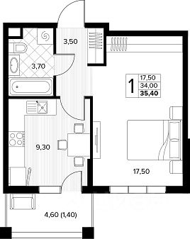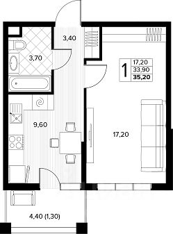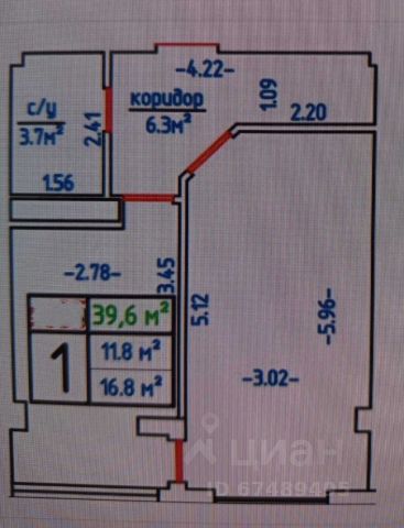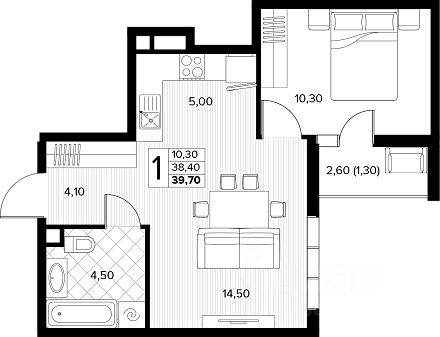 Общая площадь 38.8 м2 - огромная кухня, просторная прихожая.