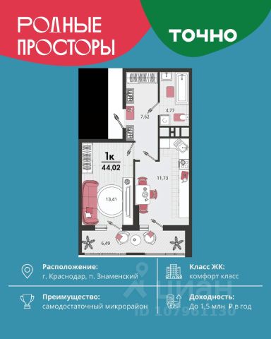 Продается 1-комнатная квартира в многоквартирном доме в самом центре станицы! Уникальное предложение по локации и цене! Звоните сейчас и воспользуйтесь отличным шансом сделать удачное вложение своих сбережений! Преимущества: Квартира удачно расположена на 2-м этаже из 3-х Во всех комнатах сделан аккуратный косметический ремонт В комнатах хорошее дневное освещение Автономное отопление позволяет хорошо экономить на коммунальных платежах зимой! Локация: В 1 мин ходьбы от дома располагаются Победа, Пятерочка, хозяйственные магазины, точки общепита, остановка внутригородского и междугороднего транспорта, спортивный центр "Богатырь", Валберис, Озон, СДЭК, школа, детский сад, музыкальная школа, новый парк, спортивная и детские площадки. В 1 км - ДК, рынок, больница, "Кореновский автомеханический техникум", станичный парк и все виды продуктовых, хозяйственных и сетевых магазинов. В 5 мин езды - выезд на трассу М4 Дон, ЖД-станция В 10 мин - г. Кореновск В 20 мин - ст. Динская В 30 мин - г. Краснодар Квартира отлично подойдет как для проживания, так и для сдачи в аренду или в качестве инвестиций на будущее. Бонусом к квартире идет металлический нестационарный гараж в отличном состоянии! Звоните, обращайтесь: расскажу, покажу, помогу на всех этапах оформления сделки! Арт. 95375889