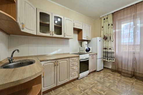 Квартира светлая, теплая, просторная, комната квадратной формы, легко зонируется, большая лоджия для кабинета, зоны отдыха. Не угловая, удобный средний этаж, окна на юго-восток. Новейший качественный ремонт, полностью мебелирована, с бытовой техникой.