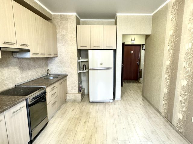 ,поэтому можно сразу заехать и жить. Комната светлая и просторная, с выходом на балкон. Кухня компактная, но функциональная. Новая и функциональная мебель и техника (холодильник, кондиционер, свч, стиральная машина)остаются новым владельцам.Санузел совмещенный, что экономит пространство и делает квартиру более удобной для проживания.