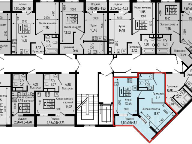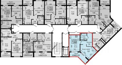 Изюминкой объекта является угловой балкон, который обрамляет апартаменты по двум стенам, на него сделано 2 выхода.