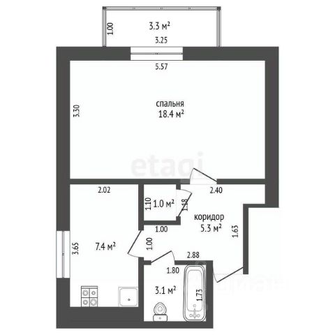 Общая площадь 53,68 кв.м. : кухня 13,9 м, комната 13,9 м, спальня 12,25 м, лоджия 3,12 м, санузел раздельный, прихожая с зоной гардероба 7,02 м. Потолки высокие 2,75 м.