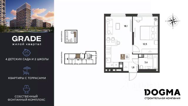 В продаже 1-комнатная квартира от застройщика! ЖК GRADE г. Краснодар, Литер 15 Срок сдачи: 4 кв. 2028, общей площадью 36 кв.м., на 5 этаже. GRADE от DOGMA: квартал бизнес-класса. Никогда неоклассика не была представлена в краснодарской архитектуре с таким характером. Пока не появился GRADE, неоклассический квартал, объединяющий строгие формы и величие с прогрессивными технологиями и лаконичностью современного дизайна. Жить в GRADE — значит чувствовать статус, наслаждаться свободой и управлять своим временем. Квартал с переменной этажностью 9, 16 и 18 этажей предлагает полную инфраструктуру для жизни: 4 детских сада, 2 школы, поликлиника и ФОК расположены в шаговой доступности. Ваши привилегии в GRADE: Архитектура в стиле неоклассицизм. Гранд-лобби с панорамными окнами, мягкой мебелью и выдержанной палитрой. Закрытый клуб с консьерж-сервисом: Детский клуб; Кинотеатр на 20 мест; Фитнес-рум. Благоустройство: Парк с фонтаном и амфитеатром, эко-площадки, зоны отдыха, спортивные площадки. Коммерция на первых этажах с площадками для бизнеса. Технологии "Умный дом": Управление через смартфон; Бесключевой доступ по BLE-технологии; Круглосуточное видеонаблюдение; Бесшовный Wi-Fi по всей территории; Интеллектуальные счетчики. Многоуровневый подземный паркинг с видеонаблюдением, прямым доступом на скоростном лифте и электрозарядками. Дополнительные удобства: Колясочные, велобоксы, кладовые помещения, скоростные лифты. Приобрести квартиру можно одним из способов: Семейная ипотека. Рассрочка. Оплата наличными. Дистанционная покупка. Позвоните сейчас и узнайте больше о возможностях приобретения квартиры бизнес-класса в ЖК GRADE! Продается 1-комнатная квартира на 5 этаже в Краснодарском крае.