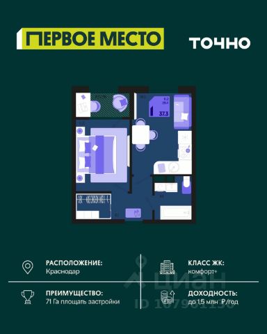 Жилой район "Первое место"- один из самых масштабных проектов в России. На территории 71 га 18 кварталов, 31 дом переменной этажности от 8 до 18 этажей, собственный парк 9 га, храмовый комплекс, пешеходный бульвар "Круг семьи", детские и спортивные площадки, мангальные зоны и различные локации для отдыха. В шаговой доступности действующие муниципальные образовательные учреждения: школа на 1 100 мест и детский сад на 250 мест. Помимо этого, в жилом районе "Первое место" построятся школа на 1700 мест с крытым 25-метровым бассейном и 5 детских садов на 1 490 мест. На первых этажах многоуровневых парковок "паркхабов" разместится более 61 тыс м2 коммерческих помещений. Жителям будут доступны собственный фитнес-центр, кафе, рестораны и магазины. В каждом подъезде предусмотрены дизайнерские холлы в стиле лобби отелей, консьерж-сервис, лапомойки, отдельные колясочные и велосипедные. Также в домах будут просторные кладовые помещения и комнаты для хранения почты с почтоматами для получения посылок из маркетплейсов.