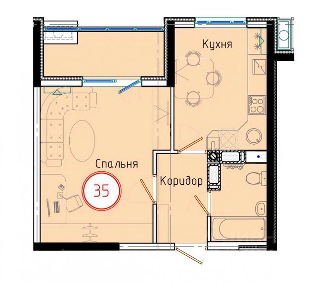 - 52,4 кв.м + 7,9 м.кв. большая лоджия с 2 выходами (на кухню и в комнату)