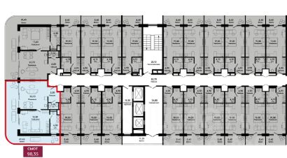 6 этаж 10-этажного монолитного дома, общая площадь 38,1 кв.м + лоджия 7,2 кв.м.