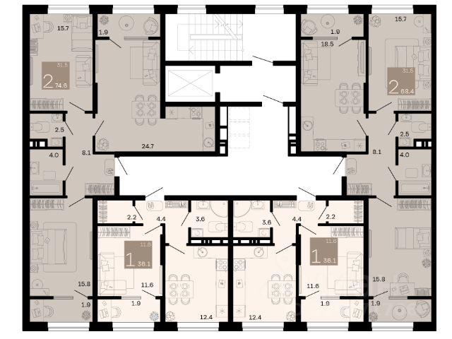 - Жилые комнаты 17,1 м² и 12,1 м²,