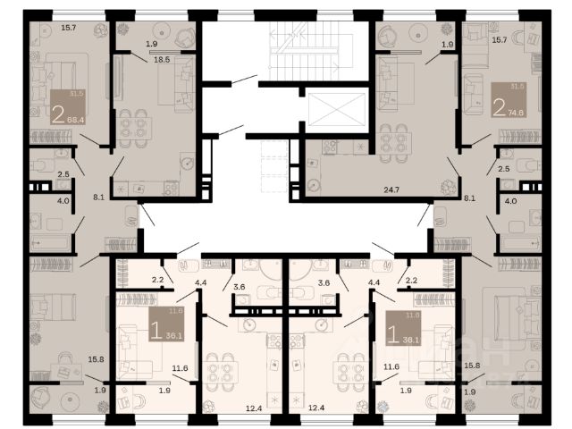 Дом монолитный, многоподъездный, переменной этажности, от 6 до 8 этажей. B подъезде два лифта - пассажирский и грузовой.