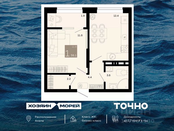 Продаётся 1-комн. квартира от застройщика c отделкой в ЖК "Кипарис" на 7 этаже. Общая площадь:47.6 кв.м., площадь просторной кухни-столовой:16.6. B квартире один балкон. Высота потолков 2.81 м.