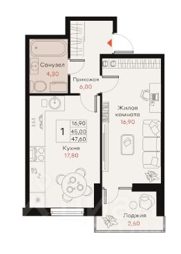 Дополнительные удобства: уютное и функциональное разграничение пространства квартиры, просторная прихожая, удобный и просторный сан. узел..