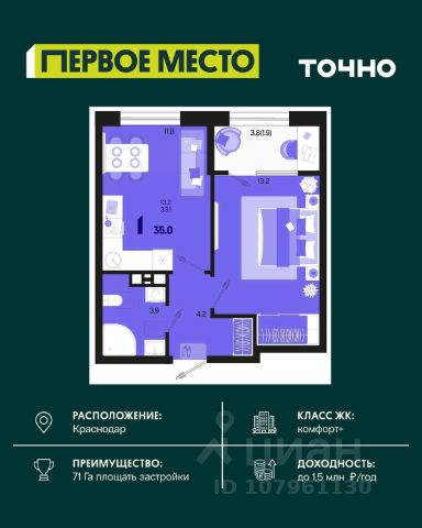 В продаже 1-комнатная квартира от застройщика! ЖК "Рекорд" 2 очередь, г. Краснодар, Литер 1 Срок сдачи: 4 кв. 2026, общей площадью 42 кв.м., на 7 этаже. Жилой Комплекс "РЕКОРД" - место вашего баланса. Город снаружи природа внутри. Квартал с максимумом возможностей для хорошо сбалансированной жизни. Расположен в оживленном благоустроенном районе города. Сочетает в себе и жилую застройку, и торгово-деловые центры. Здесь все под рукой, здесь центр городских событий. • Уникальная локация центр города • Современная архитектура • Панорамные виды • Двухуровневые квартиры с камином и террасой • Элегантные входные группы • Архитектурная подсветка фасадов • Школа во дворе (1550 мест) • Детский сад во дворе (110 мест) • Двор без машин • Подземный паркинг и гостевые парковки • Круглосуточный пост охраны • Медицинский центр • Фитнес центр • Система "умный дом" • Баскетбольная и универсальная спортивные площадки • Современные развивающие детские игровые площадки • Ресторанный дворик с аллеей и фонтаном • Храм с уникальной архитектурой • Премиальные лифты с подсветкой и музыкой • Звукоизоляционные окна • Зарядные устройства для электромобилей • Ароматизация мест общего пользования • Элегантные входные группы • Дизайнерские лобби • Консьерж сервис • Сквозные подъезды и доступ по Face ID • Кладовки • Кондиционирование холлов • Благоустройство территории с Арт объектом • Воркаут-зоны • Зона коворкинга • Wi-fi и USB розетки на всей территории двора Приобрести квартиру можно одним из способов: -субсидированная семейная ипотека 4,5 % на весь срок -рассрочка до конца строительства -оплата наличными -дистанционная покупка Позвоните сейчас и забронируйте квартиру со скидкой!