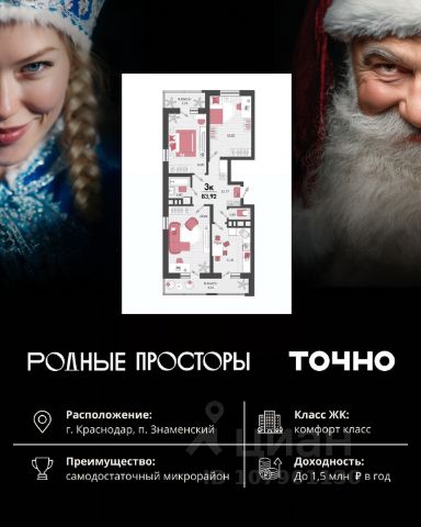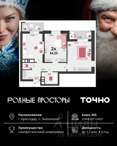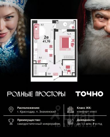 Переуступка по рассрочке с сохранением условий ДДУ ! Можете купить за полную стоимость сразу или взять в рассрочку ! Максимально быстрый выход на сделку ,1 взрослый собственник! Вид на парк ! Общая площадь квартиры 45,7 кв м ;кухню -гостиную можно разделить (свободная планировка ) и получится две изолированные спальни и кухня почти 10 кв м .Сдача -июнь 2026 г. О ЖК: Территория комплекса благоустроена: имеется двор с ландшафтным дизайном, места для активного времяпрепровождения и отдыха, зоны выгула собак. Развита социальная инфраструктура внутри комплекса — имеются школы, детские сады, медицинские и спортивные учреждения. Для автовладельцев предусмотрен подземный паркинг. Жилой комплекс "Первое место" располагается в новом районе города - Новознаменском, в Карасунском округе северо-восточной части Краснодара, и имеет выезд на трассы М4 "ДОН" и "Джубга-Сочи" в направлении Черного моря и горнолыжных курортов. В пешей доступности находятся продовольственные магазины, торговые центры, медицинские и образовательные учреждения, кафе и рестораны. До цента краснодара — 30 минут. До моря -прямая дорога ,час с небольшим на машине . Звоните ,все подробности по телефону !