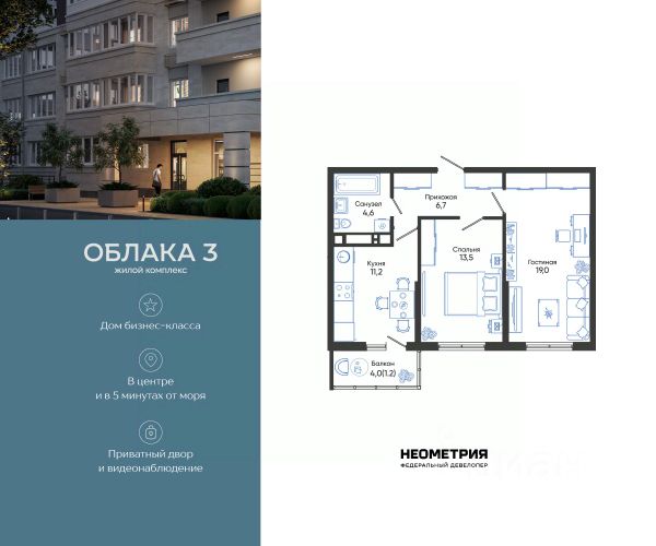• ✅ Минимальная площадь: 40,5 м²