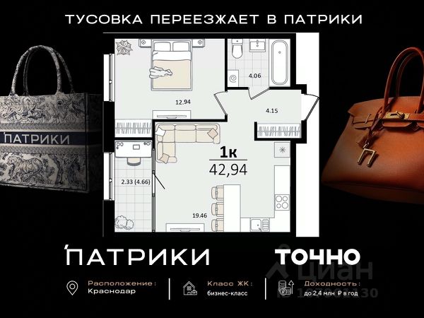 В продаже 1-комнатный апартамент 55.22 кв. м, расположенная в 4 корпусе жилого комплекса комфорт-класса "Режиссёр". Комплекс от девелопера AVA находится в развитом районе Краснодара, в 5 минутах пешком от крупного ТРЦ. Транспортная доступность • Остановка трамваев 8, 9, 10, 20 - в шаговой доступности; • 4 торговых центра в 5 минутах ходьбы; • 13 минут до живописного парка "Краснодар"; • 30 минут до аэропорта по Уральской улице; • Удобный выезд к морю через трассу М4. Современная архитектура Облик комплекса "Режиссёр" отражает современный стиль, отличающийся продуманной функциональностью. Устремленные ввысь 2 литера высотой от 14 до 21 этажа гармонируют с природным окружением комплекса - для отделки фасада подобраны лаконичные естественные оттенки. Балконы и лоджии панорамного типа с энергосберегающими стеклами не пропускают вредные УФ-лучи. Наслаждайтесь вдохновляющими видами на город без границ! Дизайнерские холлы Уют с первого шага: вас встретят входные группы с индивидуальным дизайном и комфортной мягкой мебелью для отдыха или ожидания такси. 2 скоростных лифта установлены в каждом подъезде и обеспечивают комфортное и быстрое перемещение по этажам. Кроме того, входные группы имеют безбарьерный доступ, что обеспечит удобство и безопасность для всех жителей. Двор и благоустройство Жилой комплекс "Режиссёр" отличается качественным многофункциональным зонированием двора, где каждый элемент благоустройства гармонично дополняет друг друга. Внутри комплекса находится две больших зелёных территории с детскими и спортивными площадками, фотозонами для красивых фотографий и протяженным прогулочным маршрутом. Большинство зон активности расположены на стилобате, что делает двор безопасным и уютным местом для отдыха. Преимущества • Трехуровневый подземный паркинг на 852 машино-места; • Всего 4 - 7 квартир на этаже; • Магазины, кафе и супермаркеты на первых этажах домов; • Школа, детский сад, поликлиника и парк в 5 - 10 минутах на машине.