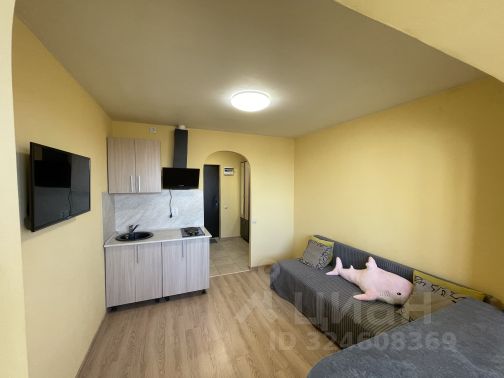 В квартире выполнен хороший и удобный ремонт: продуманное зонирование студийного пространства, что позволяет комфортно разместить зону отдыха, гостиную и кухню.