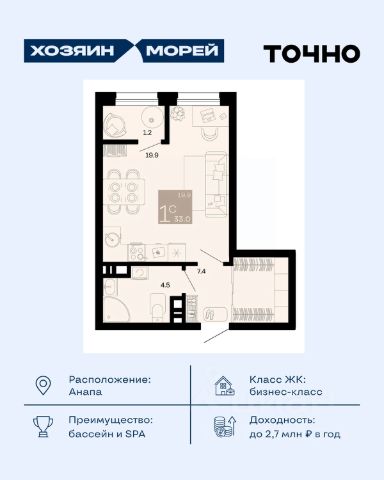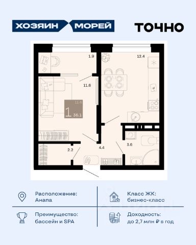 Продаётся 1-комнатная квартира в строящемся доме (поз.8), срок сдачи: II-кв. 2026, общей площадью 36.4 кв.м., на 4 этаже. Новый жилой комплекс "Кипарис" от застройщика "AVA" расположен по адресу: Россия, Краснодарский край, муниципальный округ Анапа, село Сукко, Мирная улица