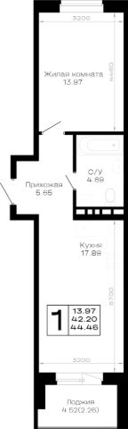 Продаётся 1-комнатная квартира в строящемся доме (квартал 7.1 литер 3), срок сдачи: IV-кв. 2026, общей площадью 44.46 кв.м., на 1 этаже. Новый жилой комплекс по ул. Николая Лебедева от застройщика "ССК"