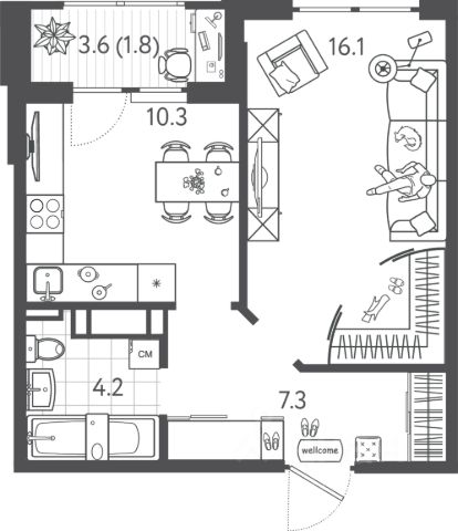 Кухня-гостиная: 21.9 м² (реальное преимущество!)