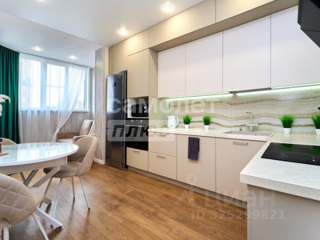 В квартире выполнен качественный дизайнерский ремонт, сделан со вкусом и любовью, как для себя! Современный кухонный гарнитур со встроенной техникой, а именно духовая печь, вытяжка, электрическая варочная панель, посудомоечная машина, так же кухня оборудована холодильником и телевизором. С кухни есть выход на остеклённый балкон, с которого открывается очень красивый вид на город. Просторная и уютная спальня в которой есть все необходимое для проживания: кондиционер, телевизор, шкаф, комод, большая кровать, все выполнено в светлых тонах. Такие детали как плед, милые подушечки, светильники, картины на стенах делают комнату стильной. Все продумано до мелочей. Совмещенный санузел, отделка санузла выполнена из качественного керамогранита, унитаз инсталляция, ванна, полотенцесушитель, фирменная сантехника.