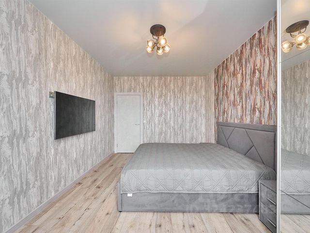 В квартире выполнен новый ремонт в светлых тонах. Хорошая планировка с комнатой правильной прямоугольной формы и просторной кухней. Санузел совмещен, установлена новая качественная сантехника. С кухни есть выход на застекленную лоджию.