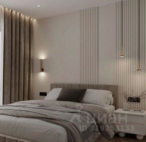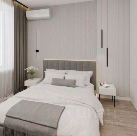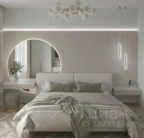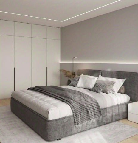Комплектация: новая двуспальная кровать в эко-коже 140х220, постельное белье, подушки, базовый матрас (самый простой, пружинный), плед, прикроватные бра (2 шт.), люстра потолочная, картины на холсте.