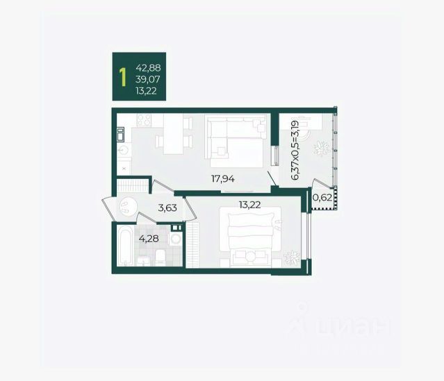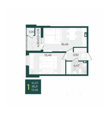 ГОСТИНАЯ-КУХНЯ 15,4 КВ.М., С ВОЗМОЖНОСТЬЮ РАСШИРЕНИЯ ЗА СЧЕТ БАЛКОНА НА 2,4 КВ.М..